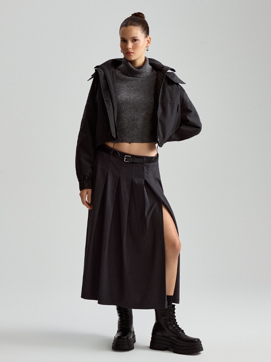 Skoro jesteśmy już przy klimatach opium core, to warto wspomnieć o jednym z najbardziej oczywistych połączeń kolorystycznych. Co pasuje do szarego koloru najbardziej? Oczywiście, że czarne ubrania i dodatki! 🖤 Jednak w tym roku masz dwie drogi, którymi pójść możesz, komponując outfit oparty na tym colour duo.