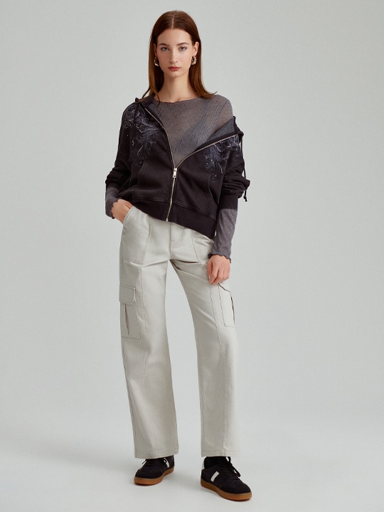 Moda od zawsze czerpała inspo z życia i to garściami. Przykładem tego są królujące w trendach i inspirowane odzieżą wojskową spodnie damskie cargo lub wyciągnięte rodem ze stroju roboczego jeansy z kieszeniami carpenter. One podobnie jak spodnie spadochronowe świetnie będą prezentować się w połączeniu z ażurowymi swetrami openwork lub z założoną na longsleeve koszulką.