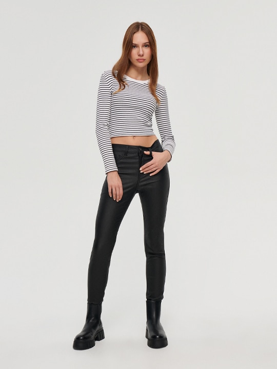 Nawet jeśli na dobre wbiłaś się w szerokie spodnie, nie rezygnuj z podkreślających sylwetkę fasonów. Choć na ulicach coraz mocniej rzucają się w oczy nieco przeskalowane spodnie z szerokimi nogawkami, to nie słabnie popularność bardziej dopasowanych modeli. W nadchodzących sezonach nadal rządzić będą pięknie podkreślające sylwetkę spodnie skinny fit — do woli więc łącz je z kozakami na platformie lub trampkami z grubymi podeszwami. Co na górę? Wystarczy bluza oversize lub kurtka koszulowa.