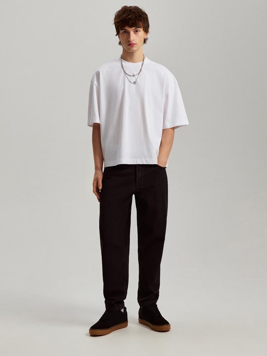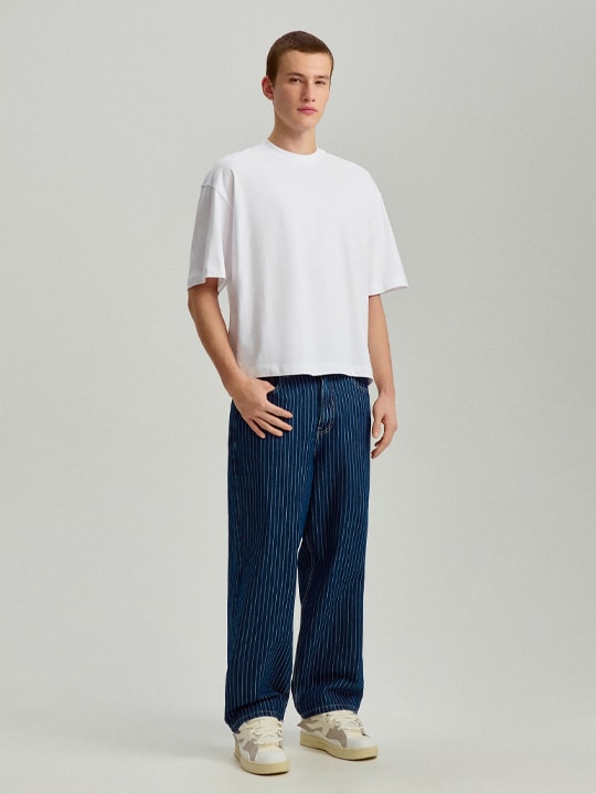 Dacă ne uităm la alți blugi bărbătești — picioarele largi se regăsesc și în modelele parachute sau straight jeans. Ce înseamnă asta? 🪂 Dacă denumirile lor îți sună necunoscut, atunci ar trebui să vizitezi magazinul House și să descoperi aceste tipuri de blugi. Cu această ocazie, vei găsi și inspirație despre cum să compui outfituri folosind aceste modele.