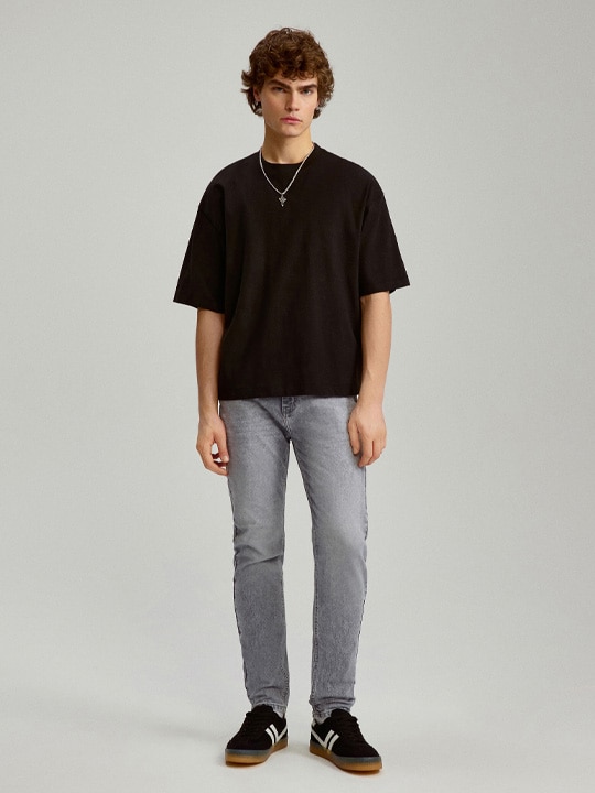 Dacă alegerea ta a căzut pe aceste modele de blugi, poți adăuga volum siluetei cu ajutorul unui hanorac, pulover supradimensionat sau un tricou oversize. 🚀 Evitați tricourile, cămășile sau puloverele strâmte — croielile de blugi slim și skinny fit nu arată bine în combinație cu un top strâmt. Astfel de outfituri nu au nimic de-a face cu moda masculină contemporană și cu siguranță nu cu confortul! 😤