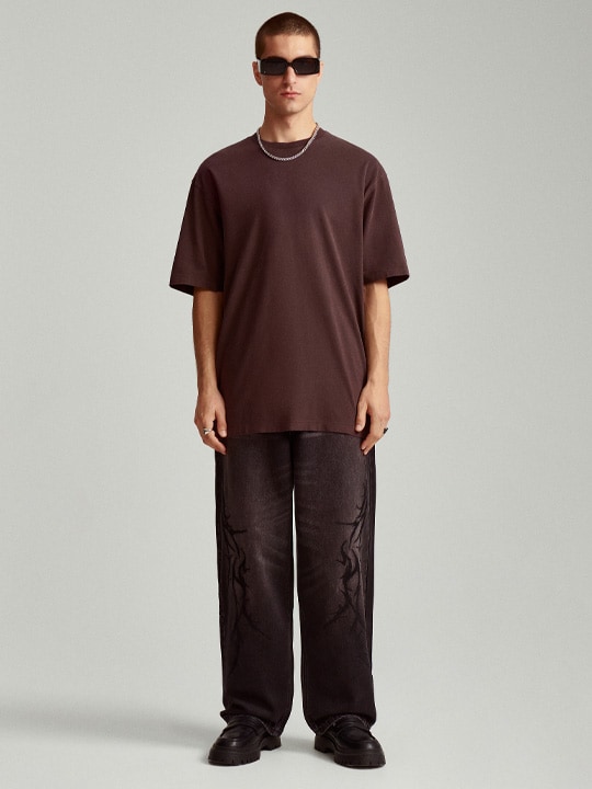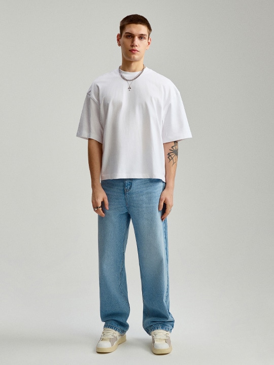 Blugii largi au cucerit deja străzile, but you know it! Dacă ești interesat doar de cele mai la modă croieli, acordă atenție blugilor bărbătești skater și baggy — aceștia sunt acum în topul tendințelor. Au picioare largi și o croială joasă, așa că, pe lângă faptul că blugii bărbătești skater și baggy arată grozav, îți oferă și libertate deplină de mișcare. Cauți inspirație pentru cum să porți pantalonii baggy și skater? 👕 Mizează pe o siluetă supradimensionată și joacă-te cu proporțiile corpului — blugii bărbătești largi se potrivesc cu tricouri loose fit sau oversize.