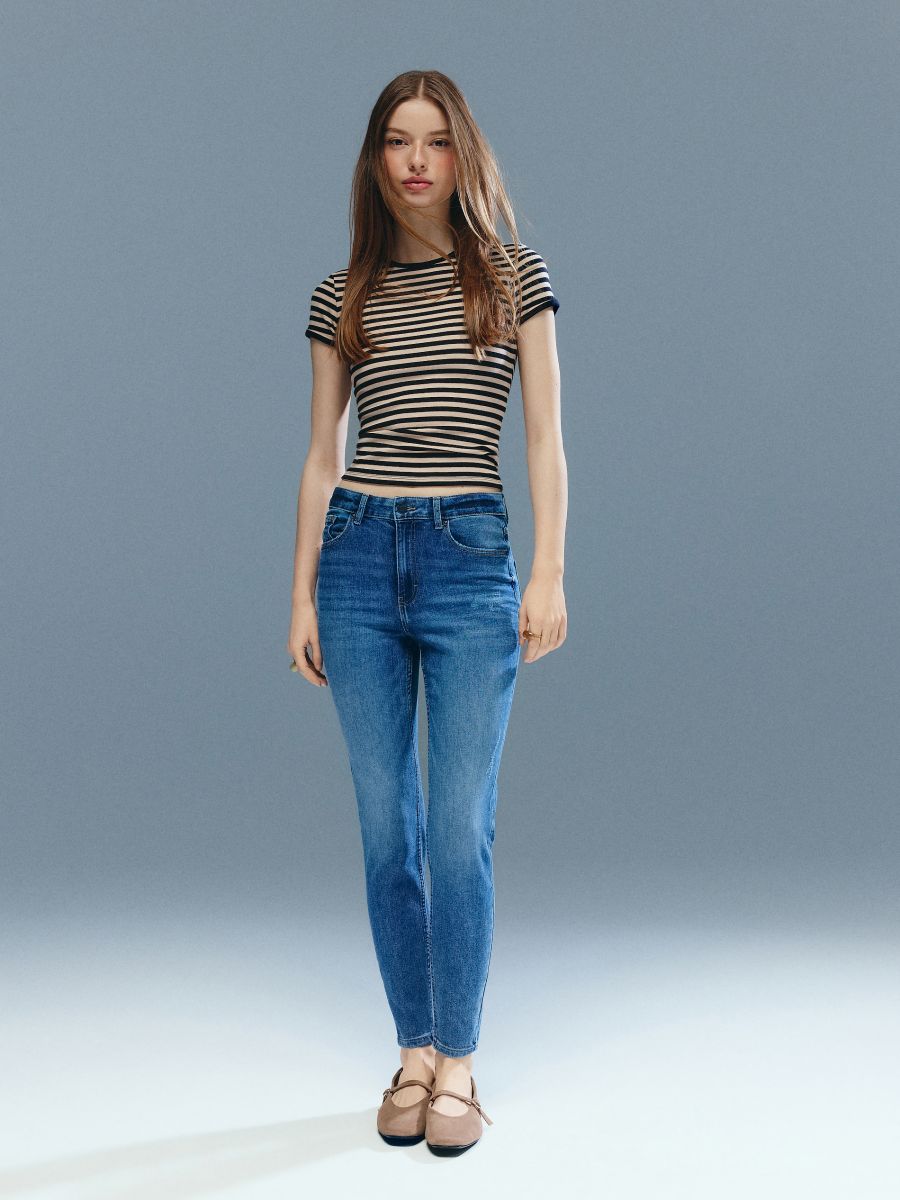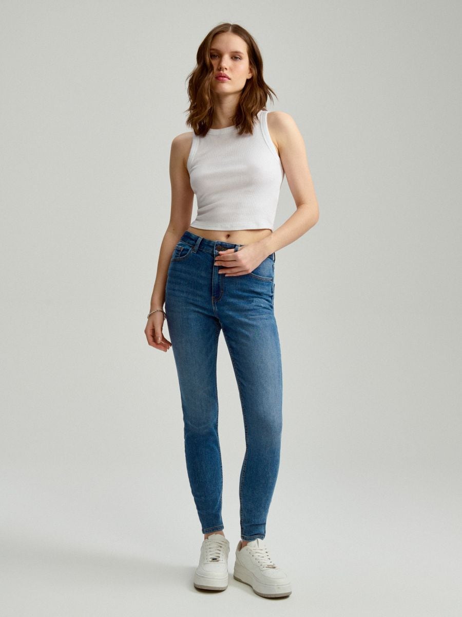 Kõrge värvliga skinny-lõikega teksad