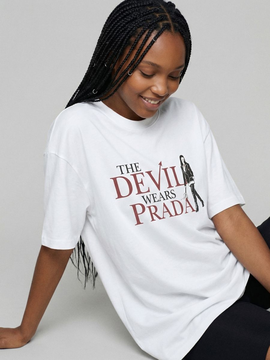 Biała koszulka UNISEX z nadrukiem The Devil Wears Prada