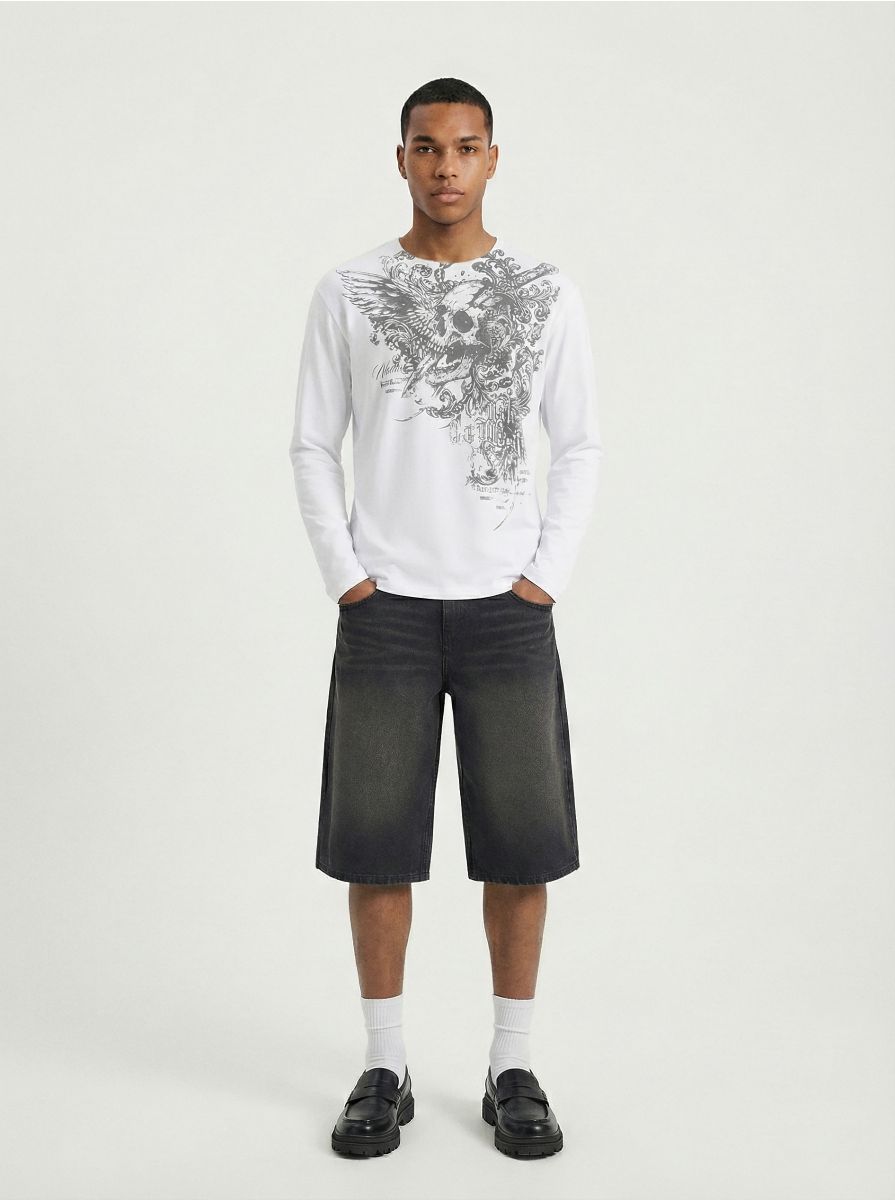 Biała koszulka z długim rękawem i nadrukiem z czaszką i mieczem