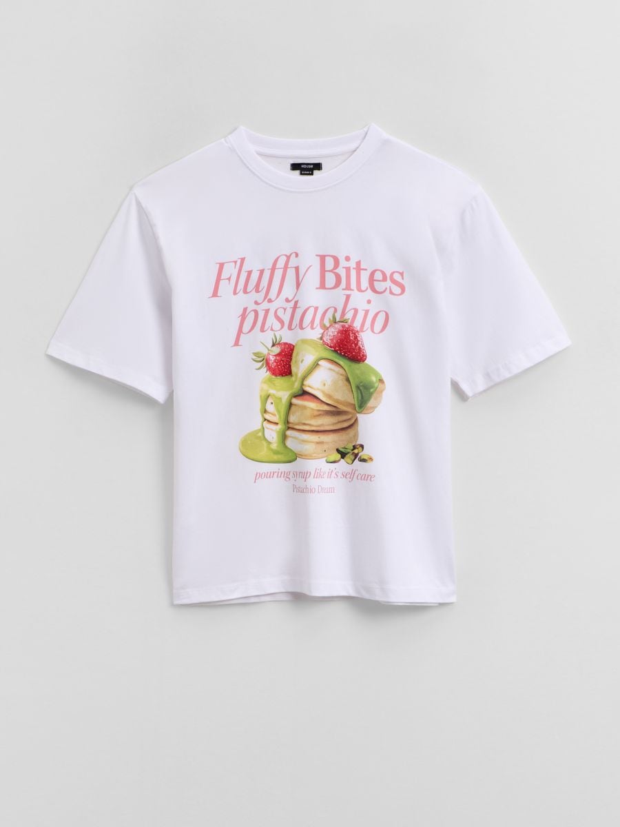 Biała koszulka z nadrukiem Fluffy Bites pistachio