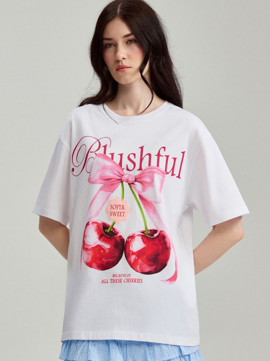 Biała koszulka z nadrukiem wisienek