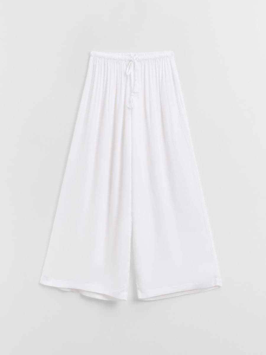 Białe spodnie wide leg z wiskozy i lnu