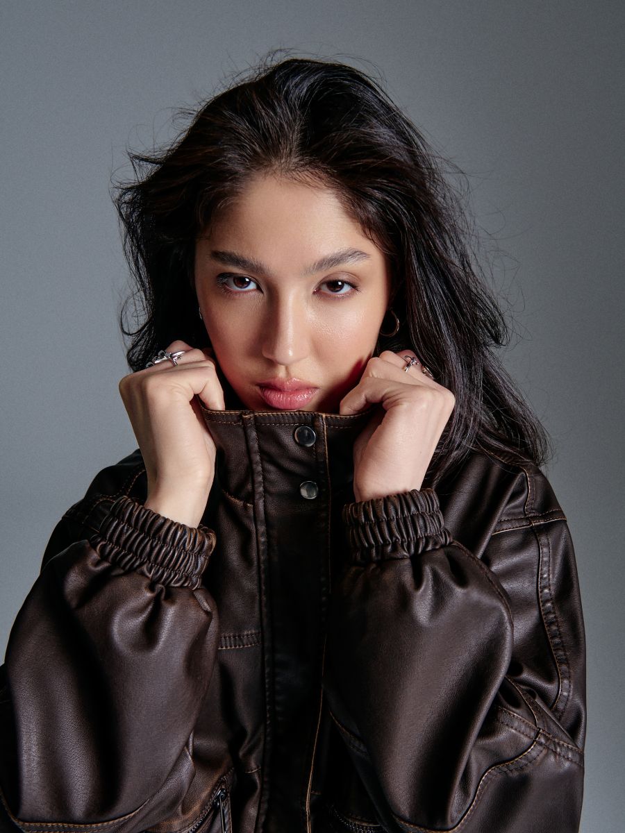 Brązowa kurtka ze sztucznej skóry ze stójką w stylu vintage