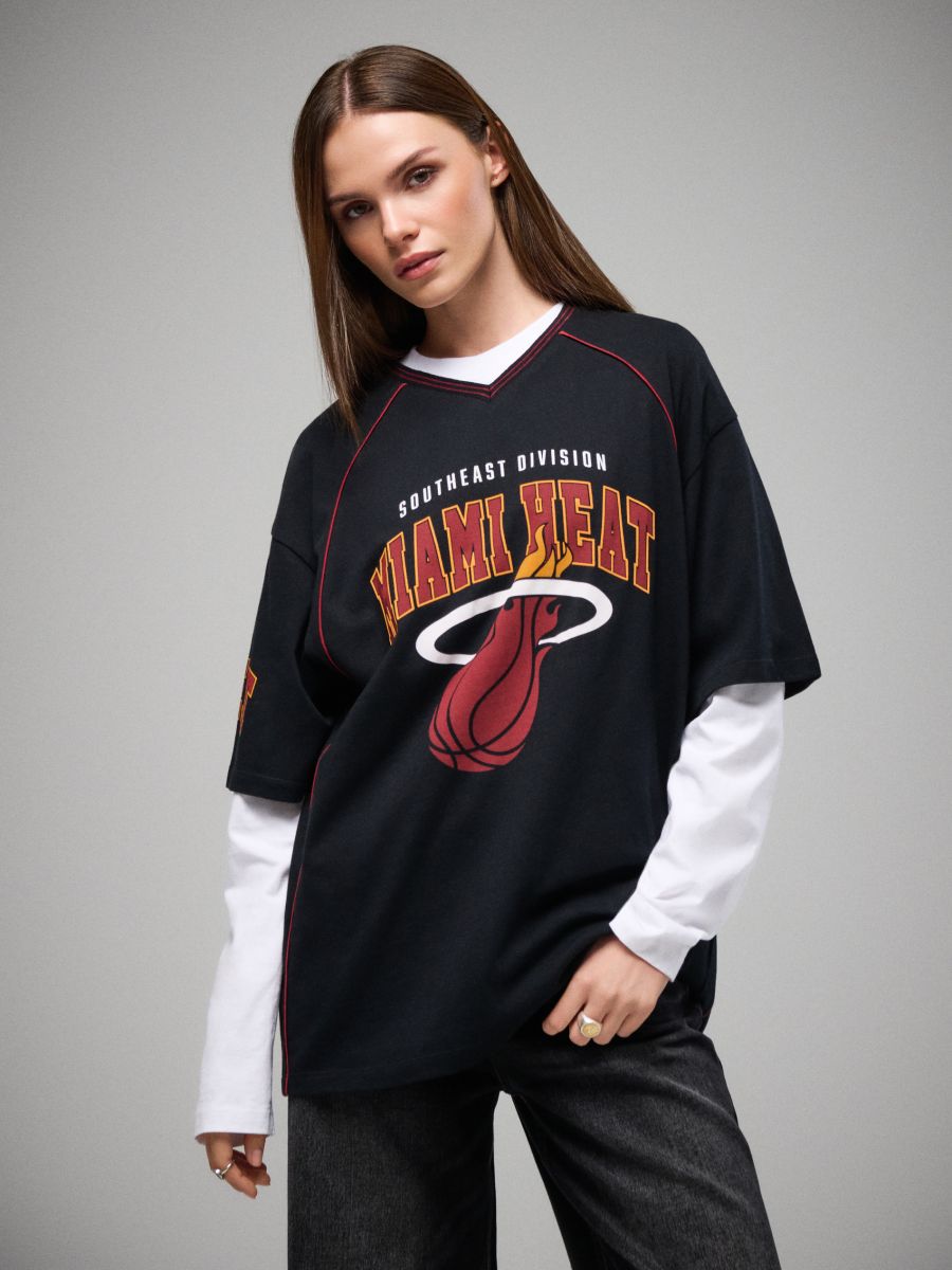 Czarna koszulka z nadrukiem Miami Heat