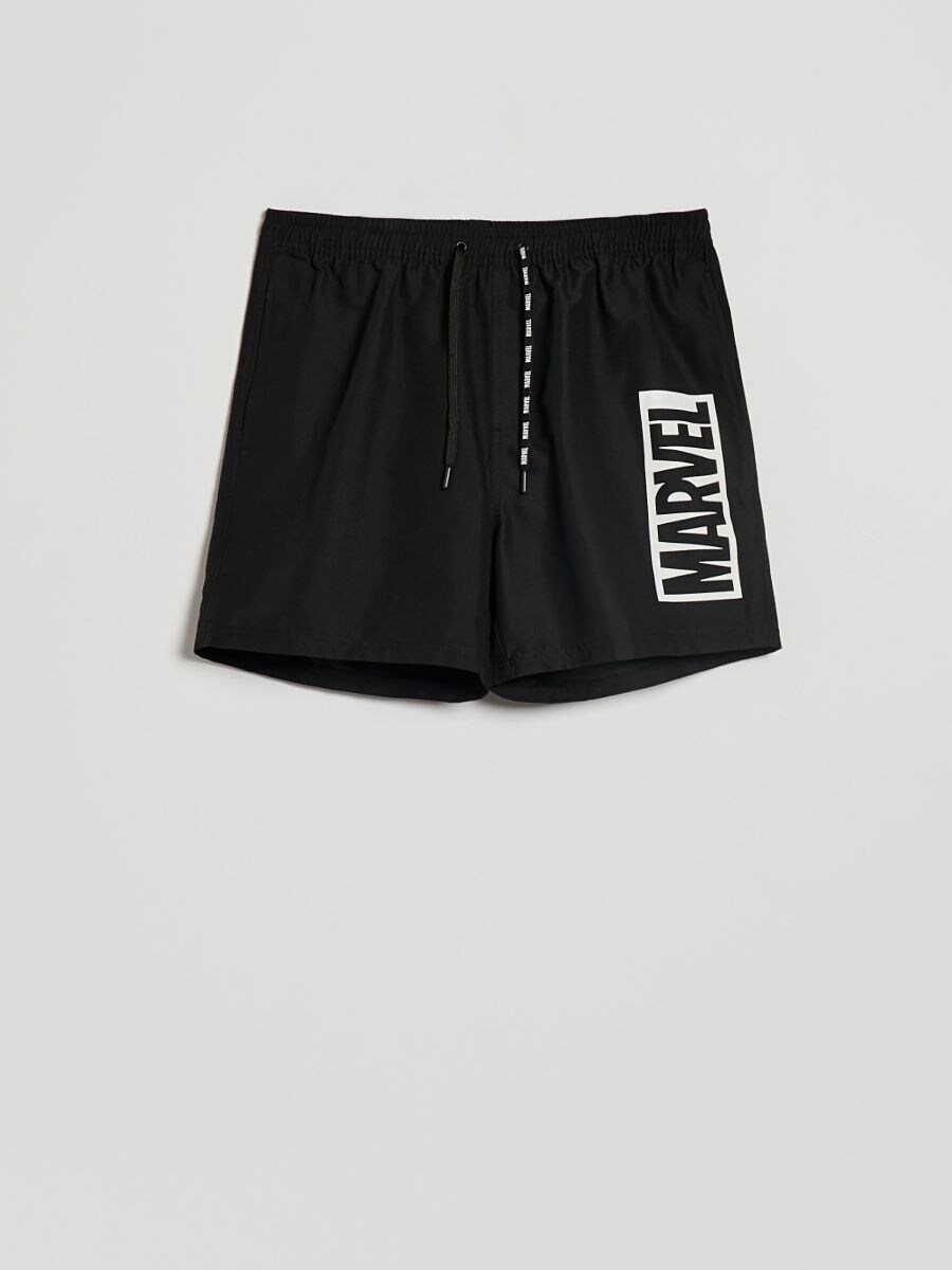 Czarne szorty kąpielowe z nadrukiem Marvel