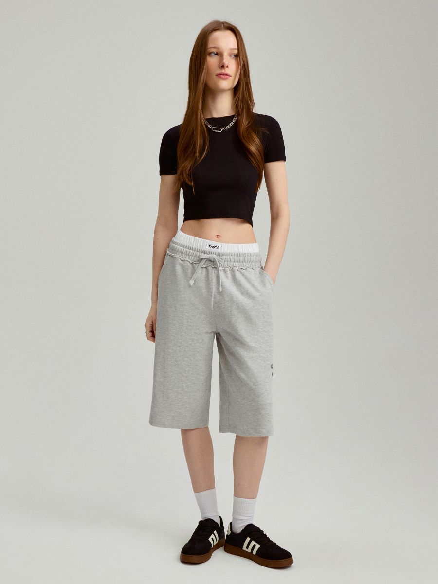 Dresowe szorty bermudy z bieliźnianą wstawką szare
