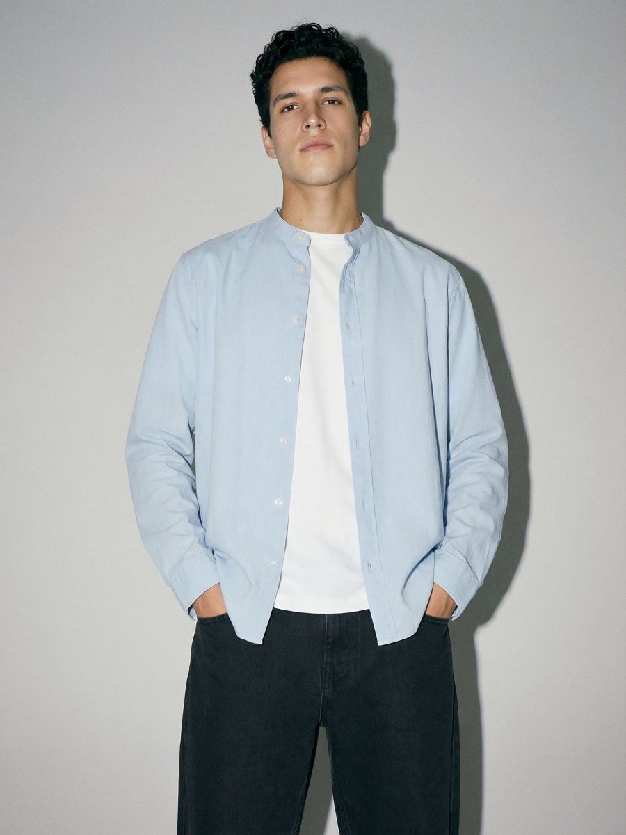 Jasnoniebieska koszula ze stójką