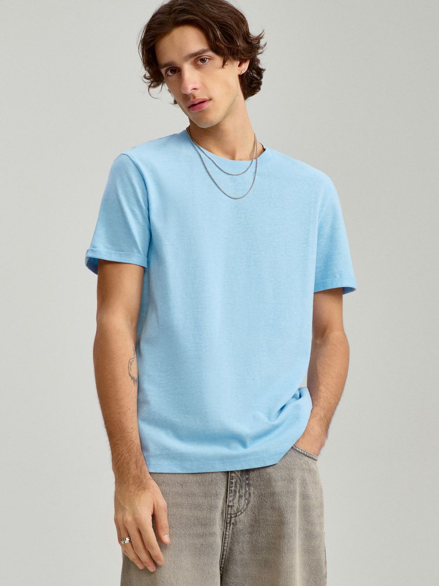 Jasnoniebieska koszulka basic z okrągłym dekoltem