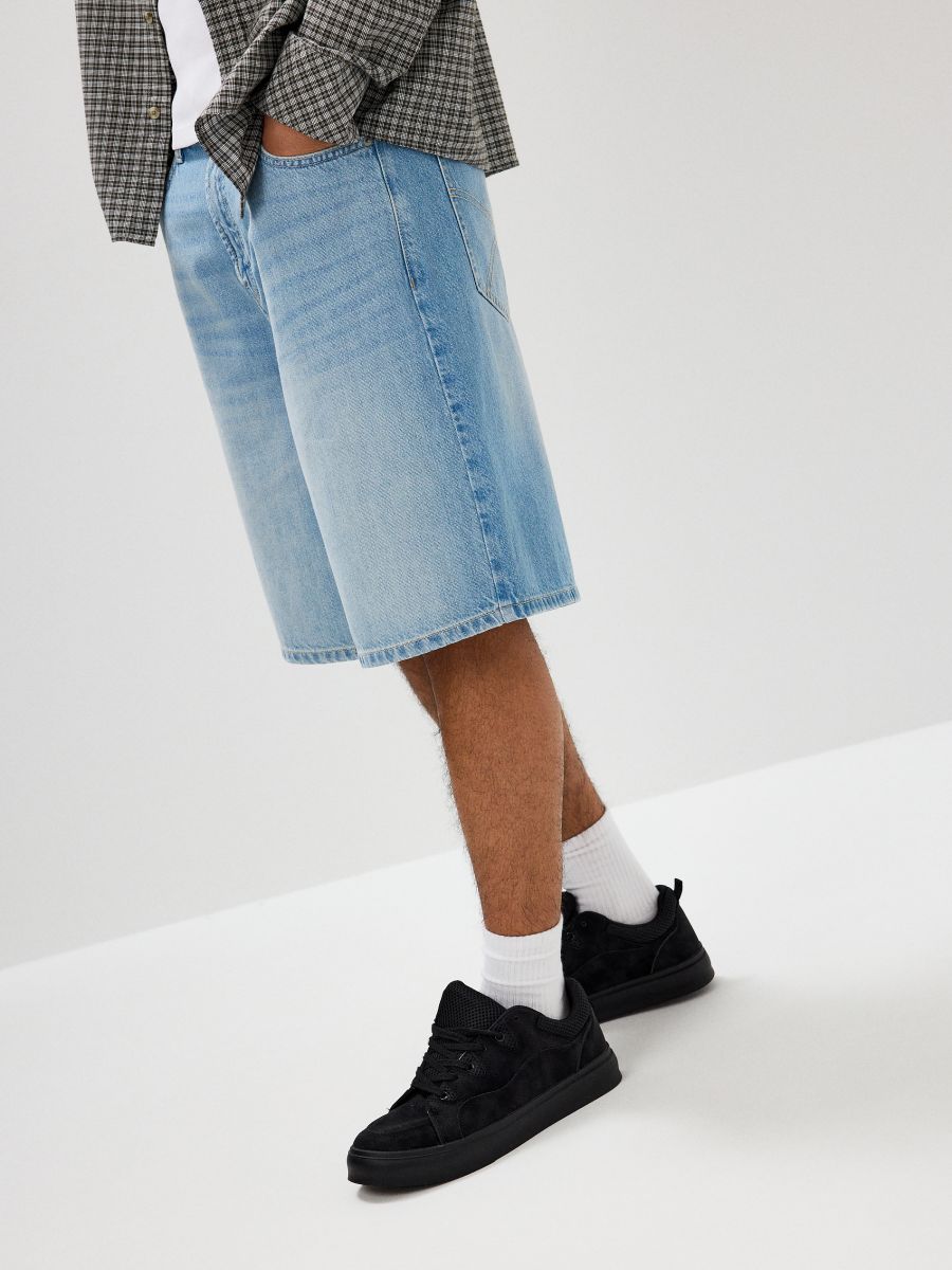 Jasnoniebieskie szorty jeansowe z efektem sprania