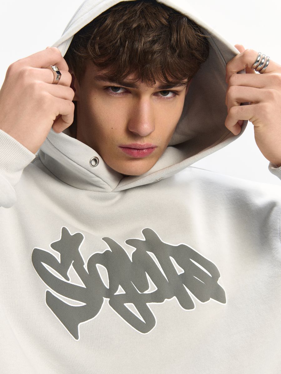 Jasnoszara bluza z kapturem i nadrukiem Sights