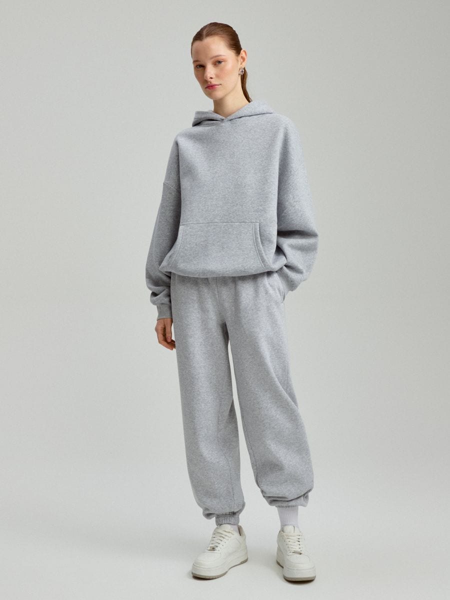 Jasnoszare dresowe joggery ze średnim stanem