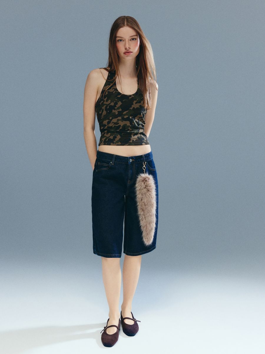 Jeansowe bermudy z niskim stanem granatowe