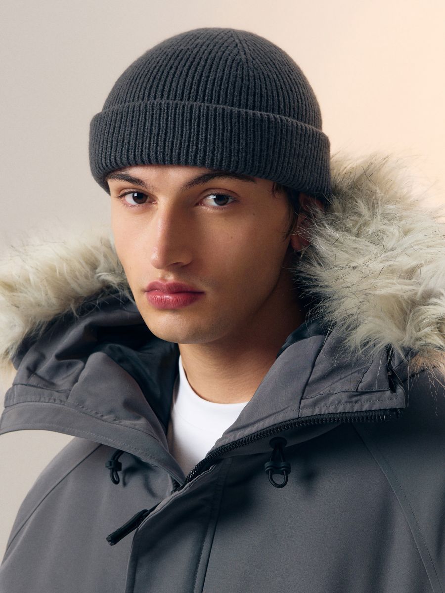 Krótka czapka beanie z podwiniętym brzegiem grafitowa