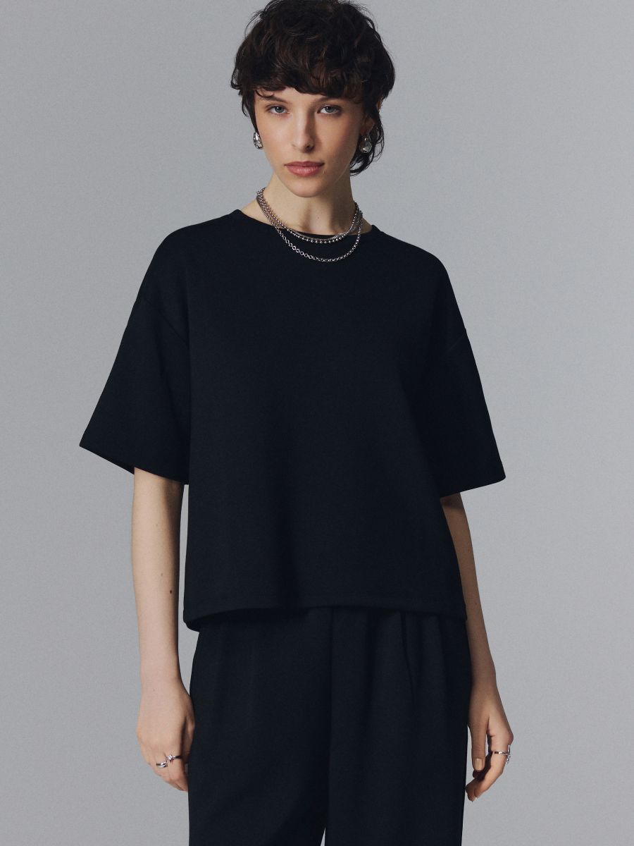 Krótka koszulka z modalem czarna