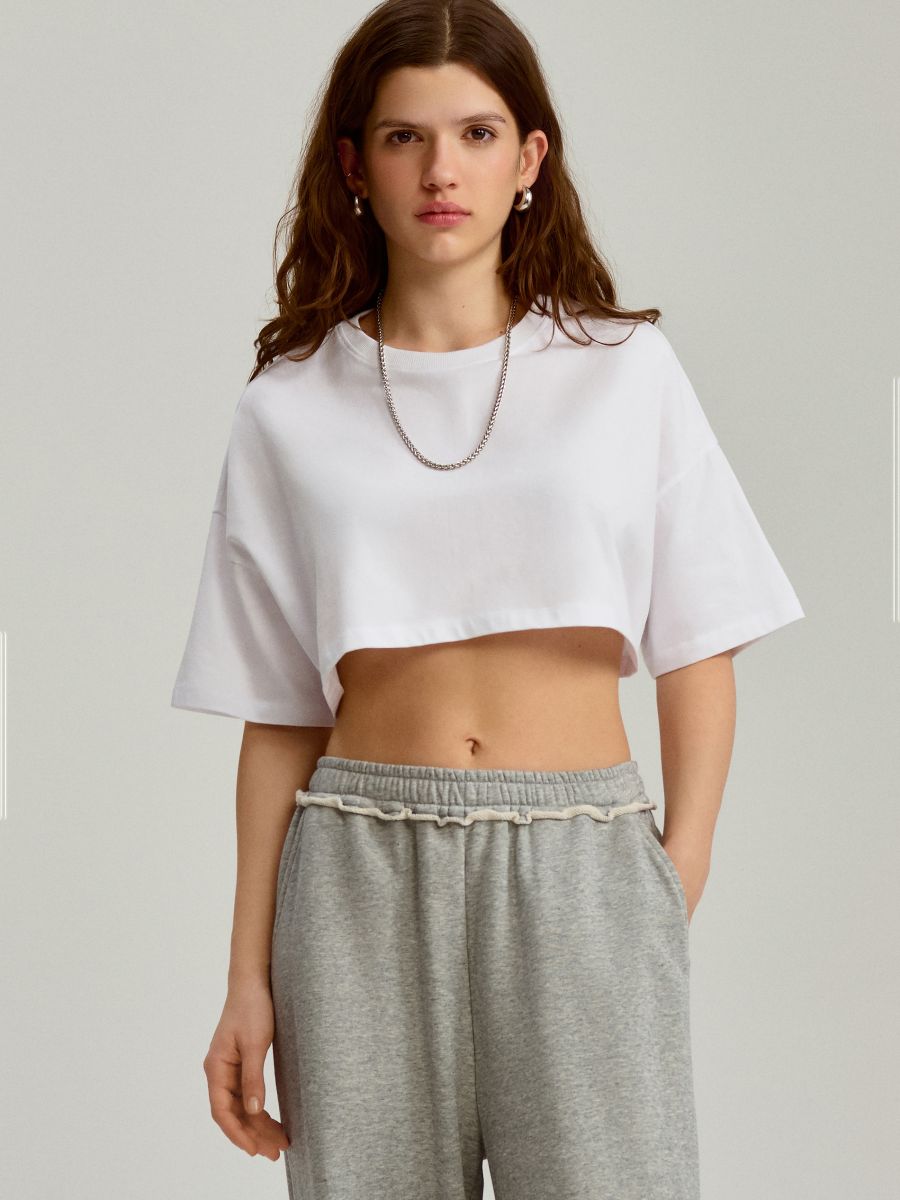 Krótka koszulka z okrągłym dekoltem biała