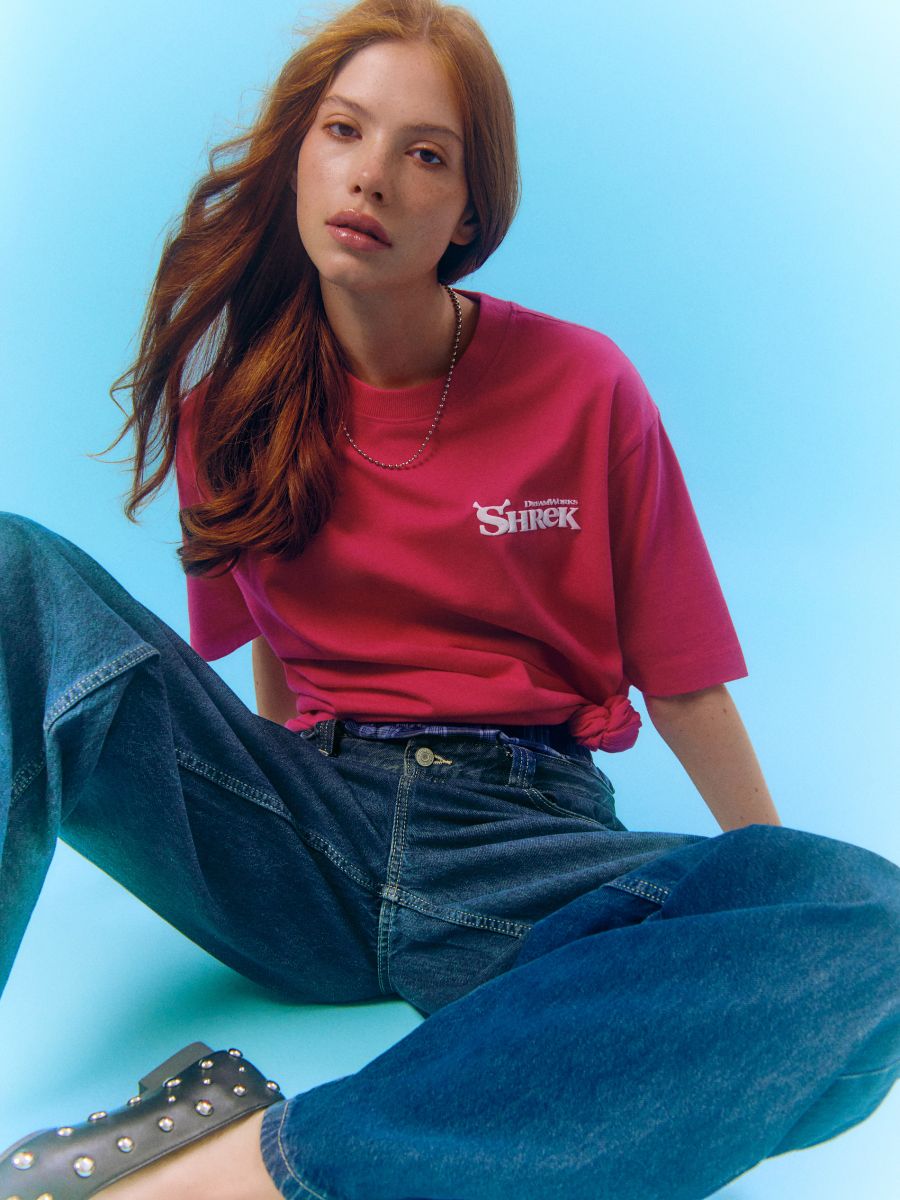 Różowa koszulka z nadrukiem Shrek x Włodi4444.