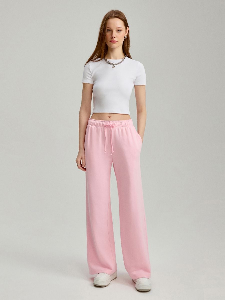 Różowe spodnie dresowe mid waist wide leg