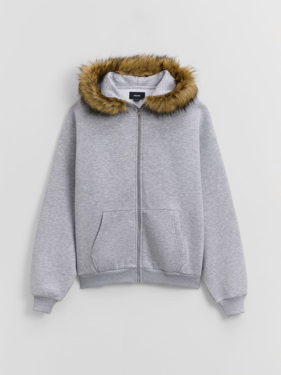 Rozpinana bluza z kapturem ze odpinanaym futerkiem szara