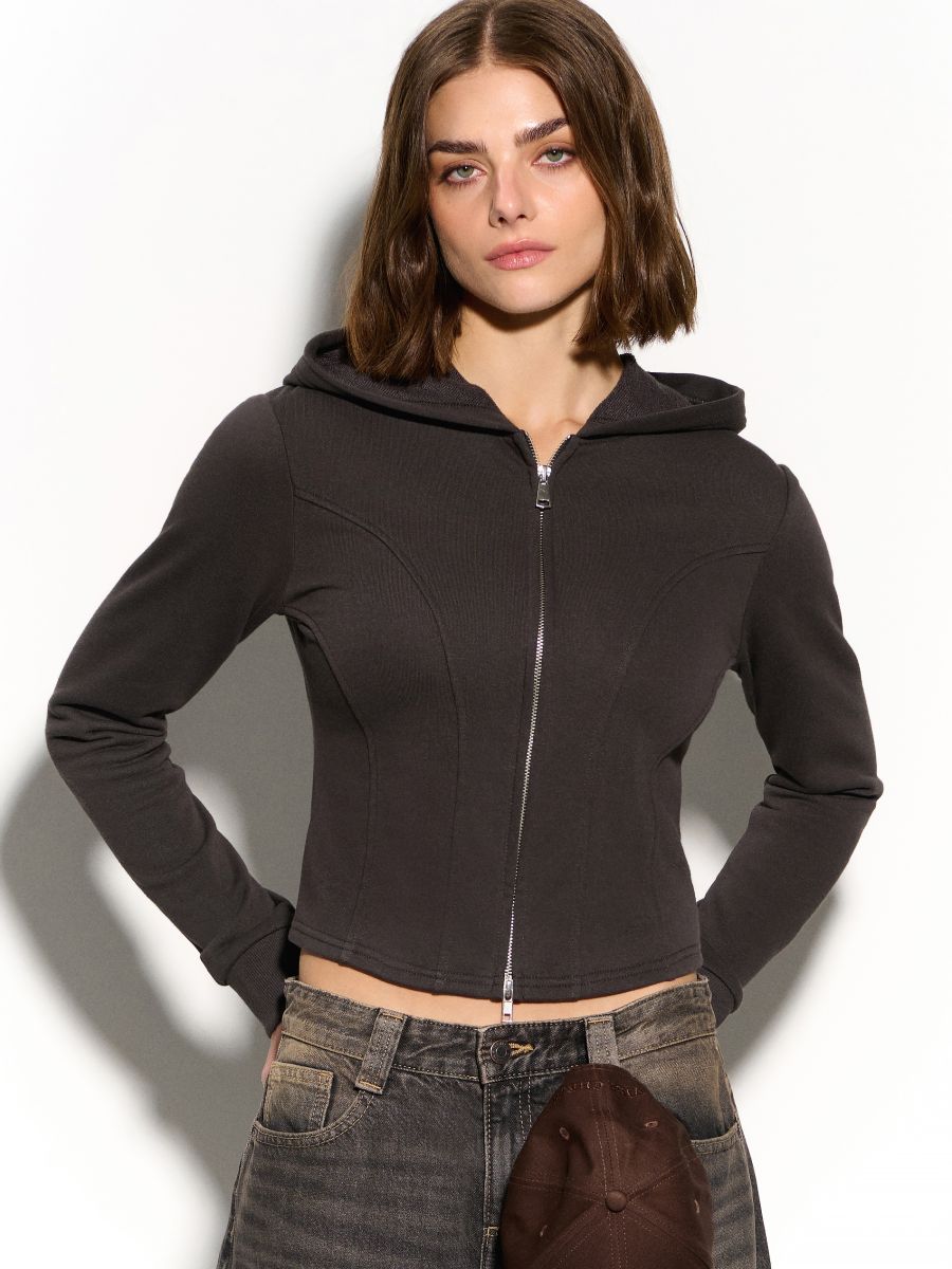 Rozpinana brązowa bluza z kapturem o skróconym kroju