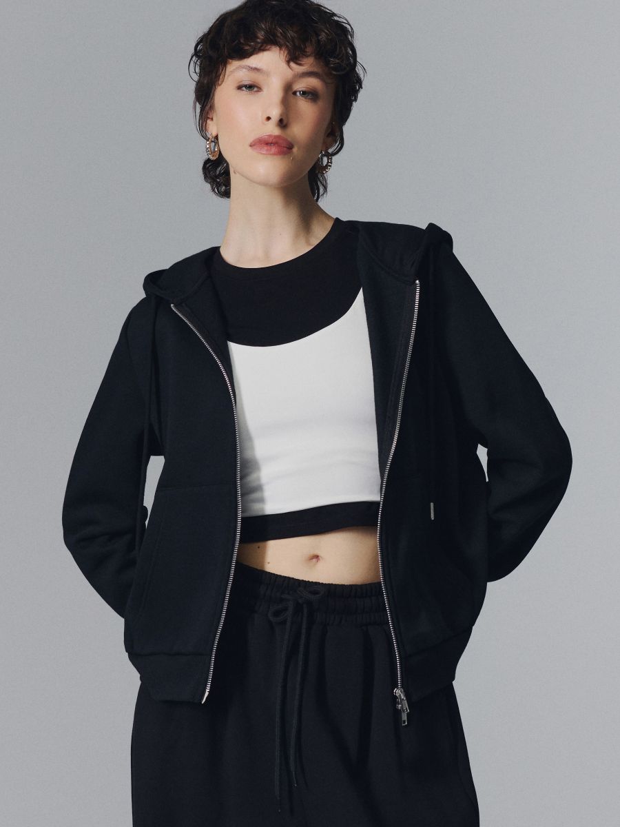 Rozpinana czarna bluza z kapturem