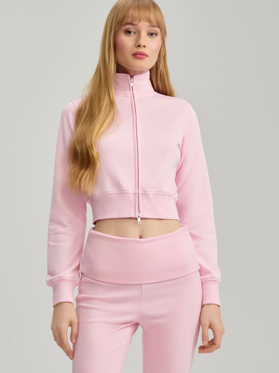 Bluză sport cu guler înalt și fermoar lung