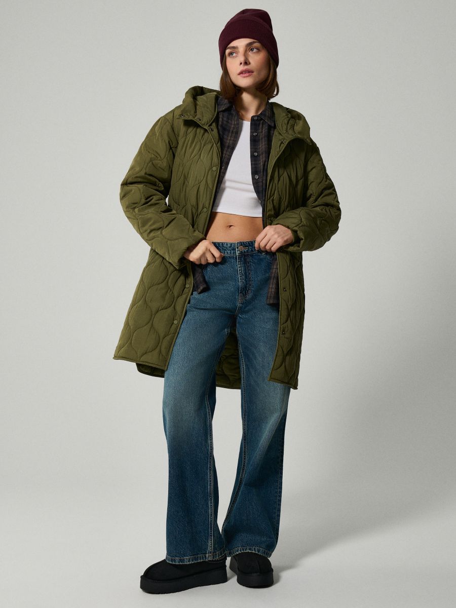 Стьобане пальто з каптуром