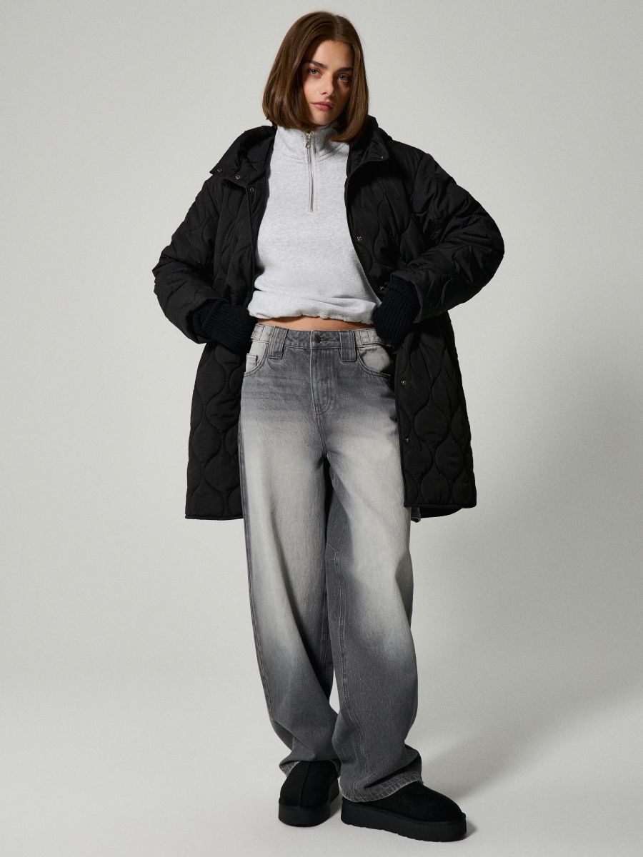 Стьобане пальто з каптуром